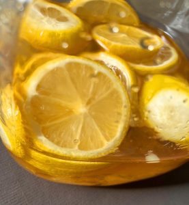 このレモンのシロップ漬けを飲んで
